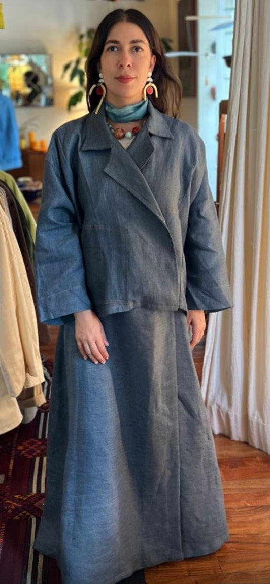 Pantalón Ancho en lino, con bolas en costados, pastelones al frente y fruncido en centro espalda resorte en cintura espalda.
